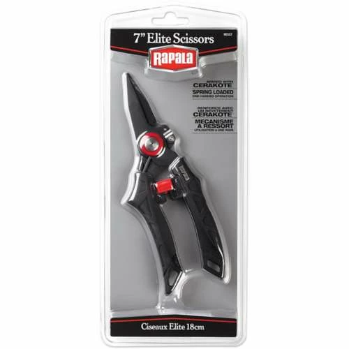 Armed with high performance, lightweight Cerakoteยฎ coating which protects against abrasion,corrosion & UV rays. The Elite Scissors serrated bladescut all braid, monofilament, fluorocarbon line. Side cutter bladescut light wire up to 15 lbs. Spring loaded for easy one-hand operation & sliding lock forsafe storage. Robust, comfortable ergonomic handle design & lanyard ready.